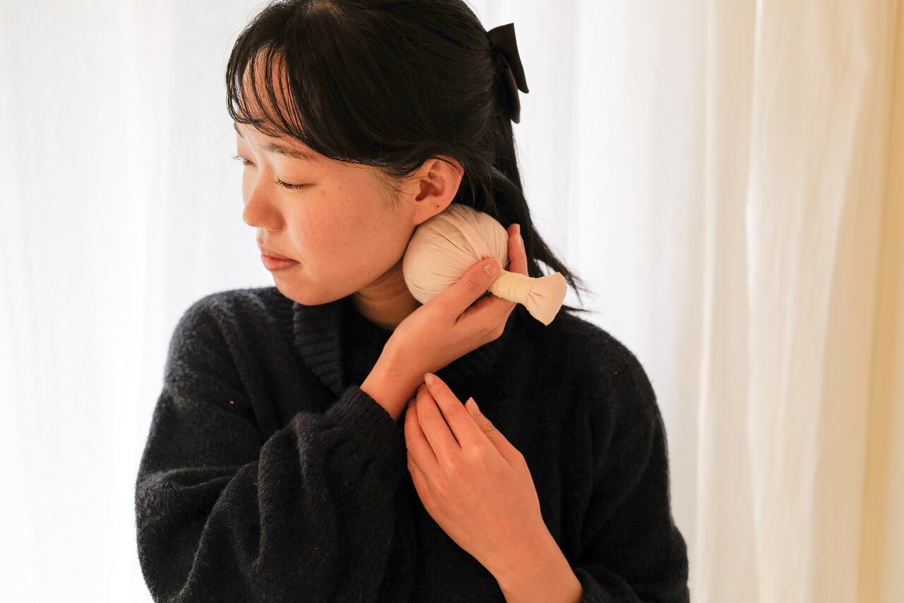 無農薬(天然)ハーブの香りと温かく柔らかい感触に心も身体もほっとゆるみますよ。